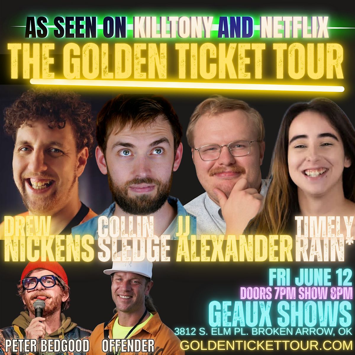 KillTony Golden Ticket Winners Drew Nickens, Collin Sledge and JJ Alexander w/special guest Timely Rain (as seen on Netflix) LIVE at GeauxAbout this Event