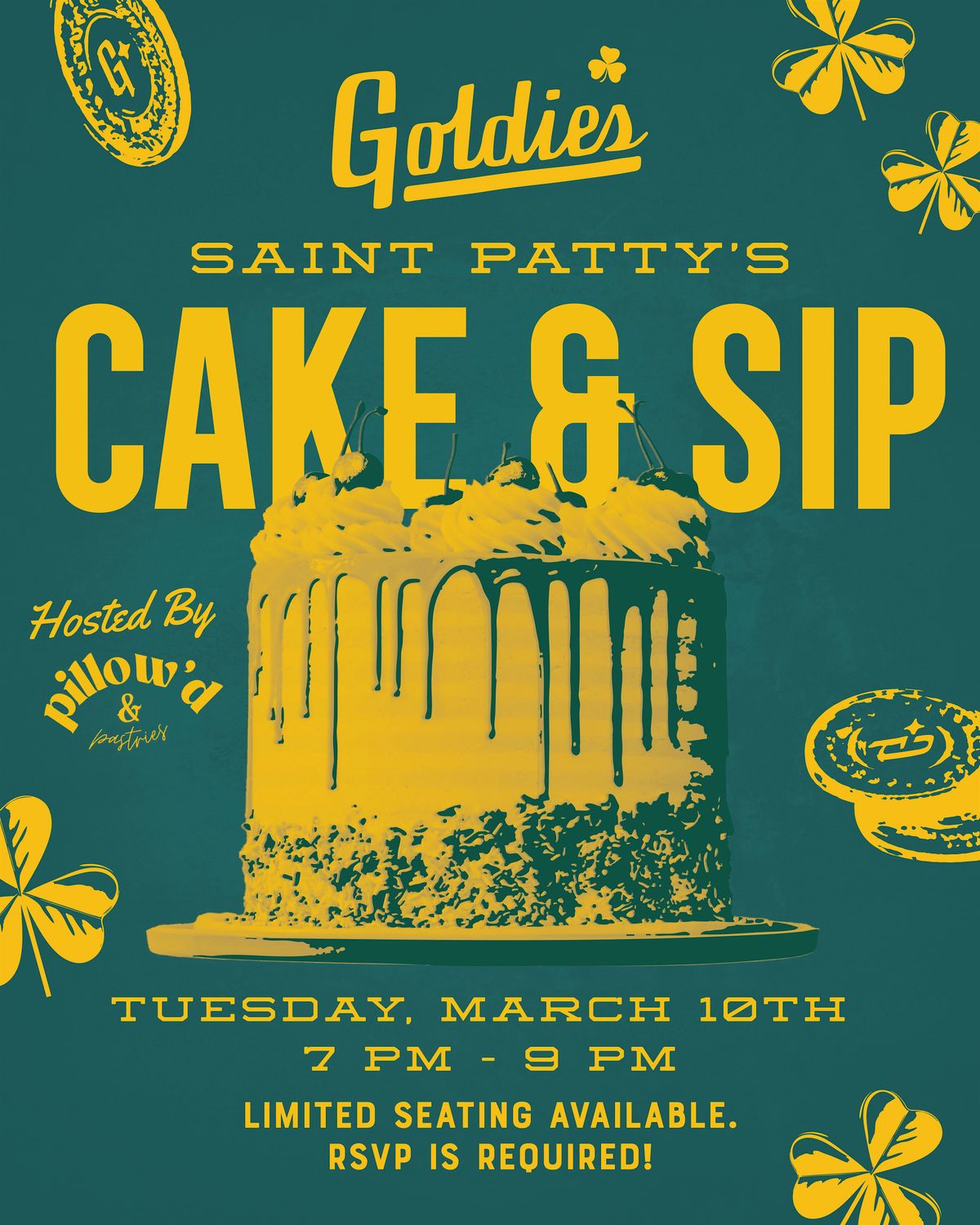 Join Us for a St. Patty’s Cake & Sip at Goldie's! 🍀🍰🥂