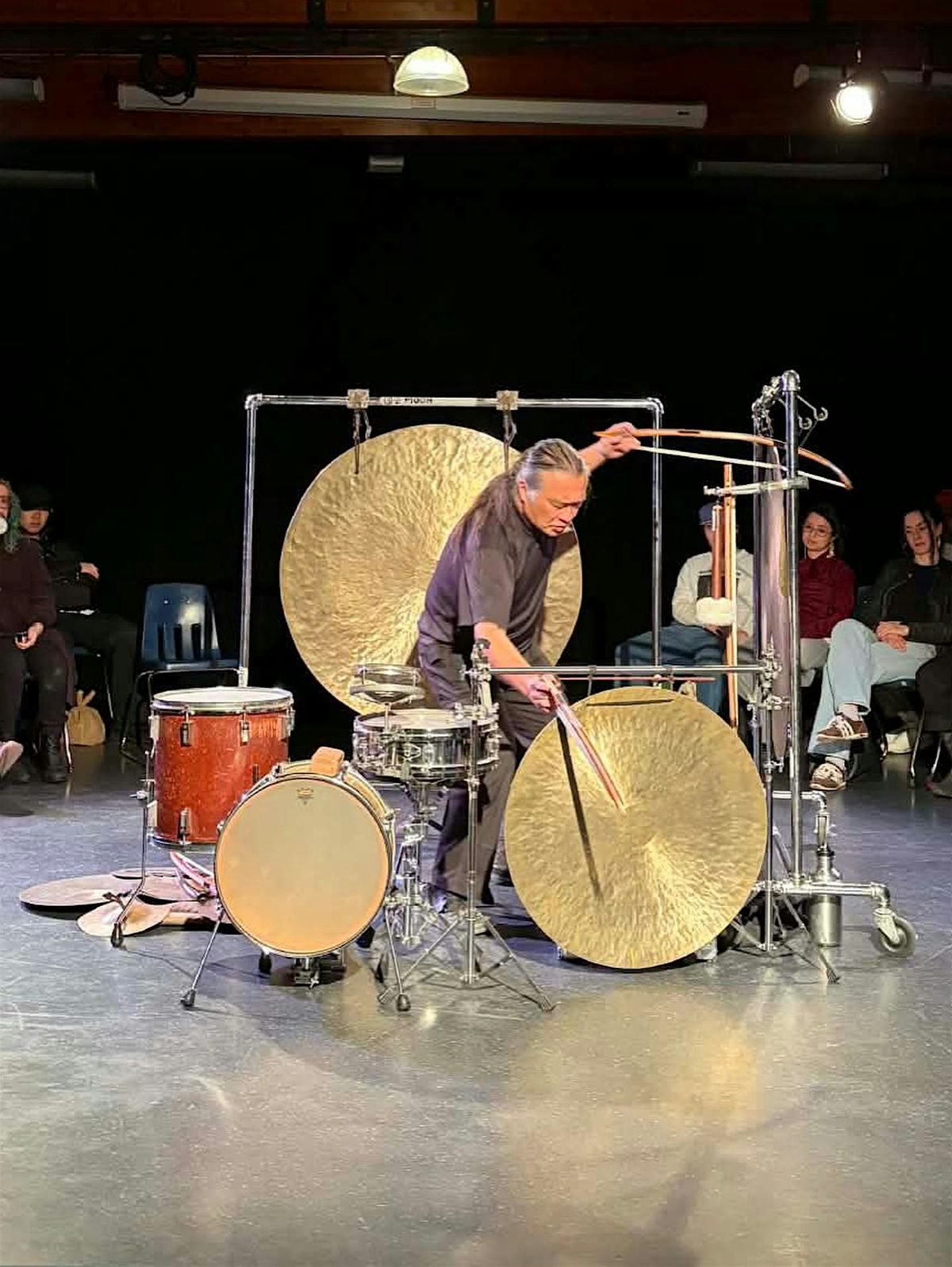 Tatsuya Nakatani is an avant-garde percussionist, composer, and artist of sound. Active internationally since the 1990s, Nakatani has released over 80 recordings and tours extensively, performing over 150 concerts a year. His primary focus is his solo work and his large ensemble project, the Nakatani Gong Orchestra. He teaches master classes and lectures at universities and music conservatories around the world. Originally from Japan, he makes his home in the desert town of Truth or Consequences, New Mexico. With his activity in new music, improvisation, and experimental music, Nakatani has a long history of collaboration.Nakatani's distinctive music centered around his adapted bowed gong, supported by an array of drums, cymbals, and singing bowls. In consort with his personally hand-carved Kobo Bows, he has spent decades refining and developing his sound as an arrangement of formations of vibrations, incorporated in shimmering layers of silence and texture. Within this contemporary work, one can still recognize the dramatic pacing, formal elegance and space (ma) felt in traditional Japanese music.