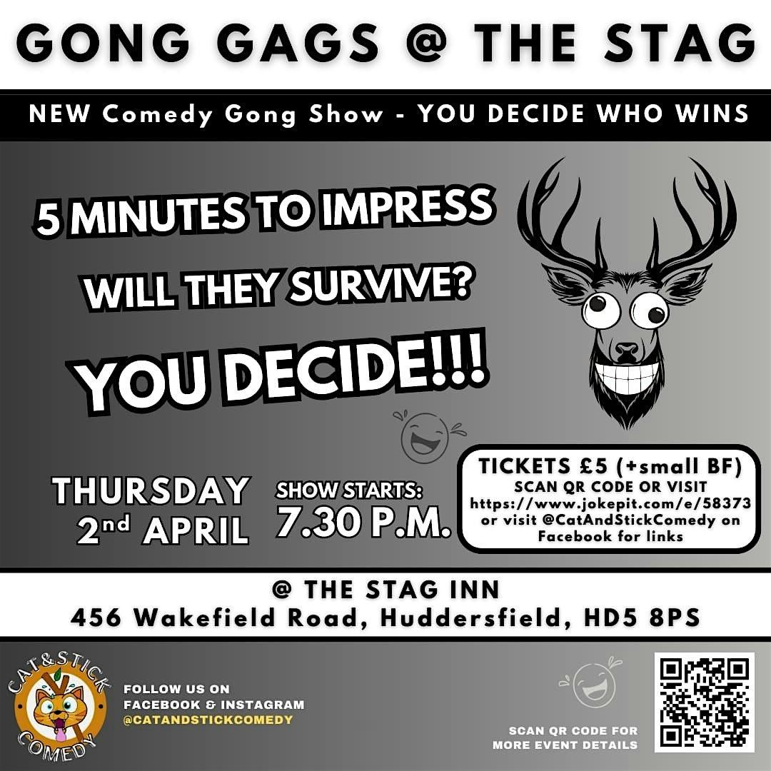 Get ready for a night full of laughs and good vibes at The Stag! Join us in person for Gong Gags, where the jokes fly fast and the fun never stops and you decide who stays or goes. Bring your friends, grab a drink, and enjoy some top-notch comedy right here in town. Don’t miss out on the laughs—see you at The Stag!