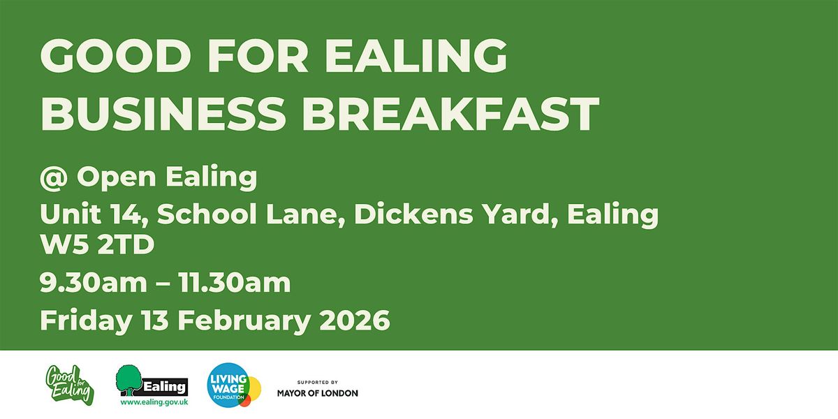 Join us for a dynamic morning of networking, learning and inspiration at the next Good for Ealing Business Breakfast - a free event designed for SMEs, sole traders and organisations based in Ealing.