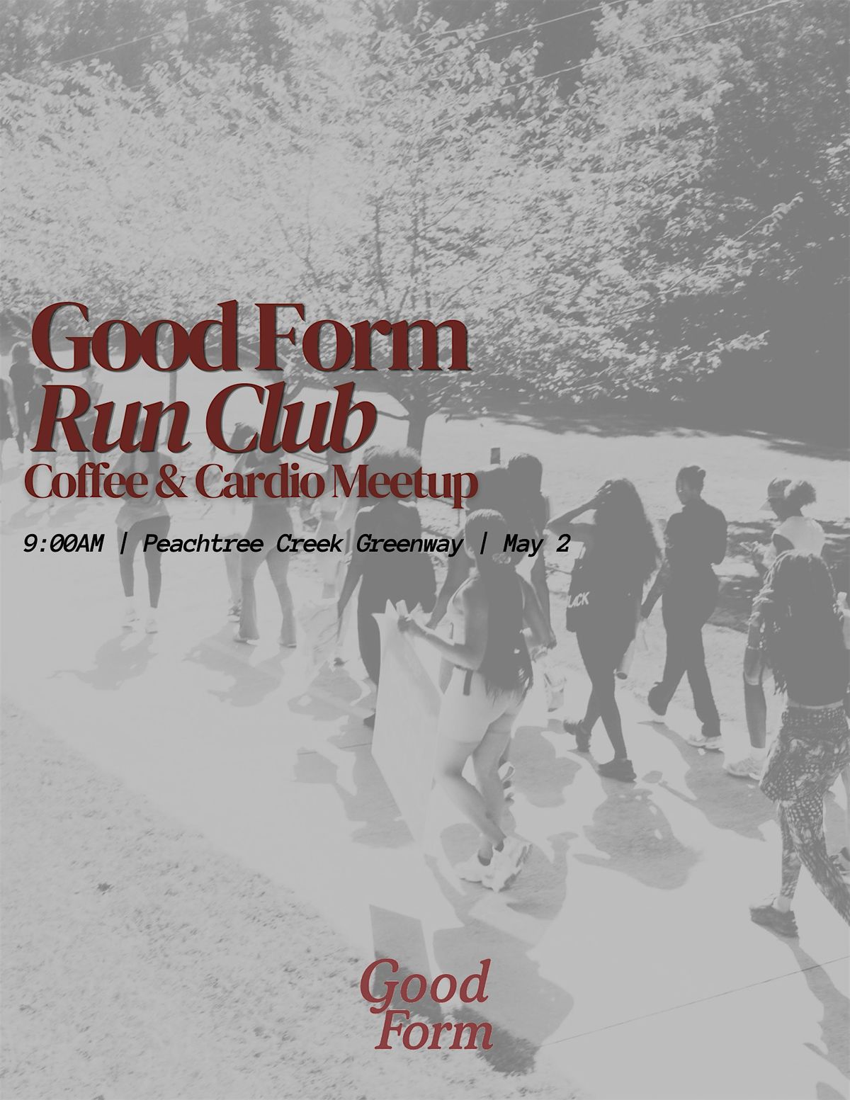 Join us for our very first Good Form Run Club, a low-pressure, high-vibe 1.3 mile run/walk designed for every level. Whether you’re running, jogging, walking, or proudly repping the slow miles club, this space is for you.