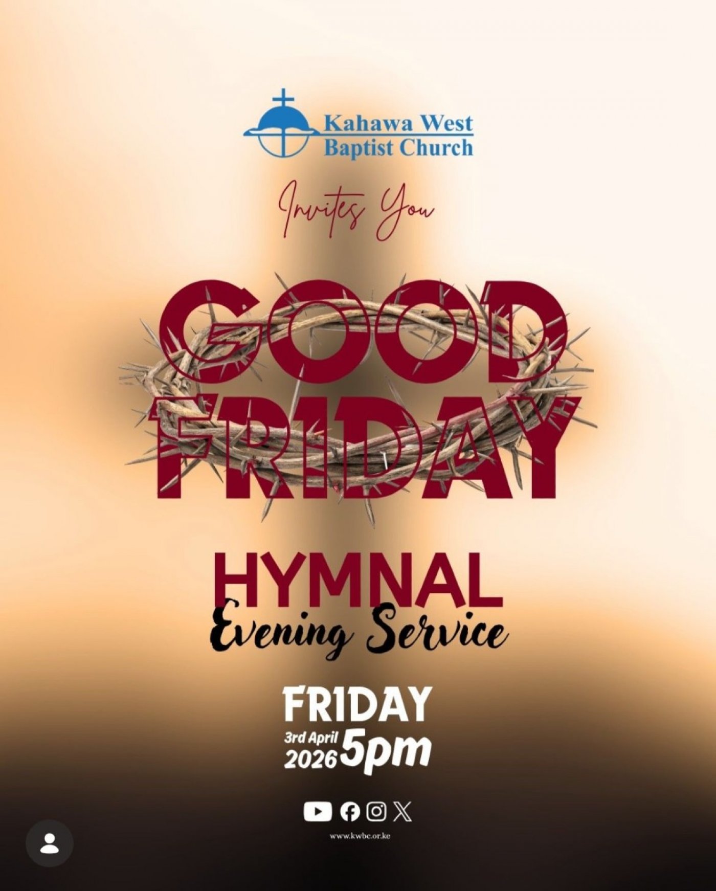 Step into a realm of soul-stirring melodies at the "Good Friday Hymnal" Let the harmonious waves of music guide your spirit on April 3, 2026, starting at 5:00 PM at Kahawa West Baptist Church in Nairobi.