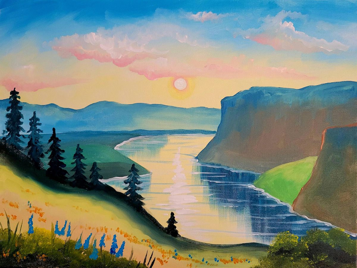 Carrie will be guiding you how to create a beautiful painting of The Gorge at Sunrise!
