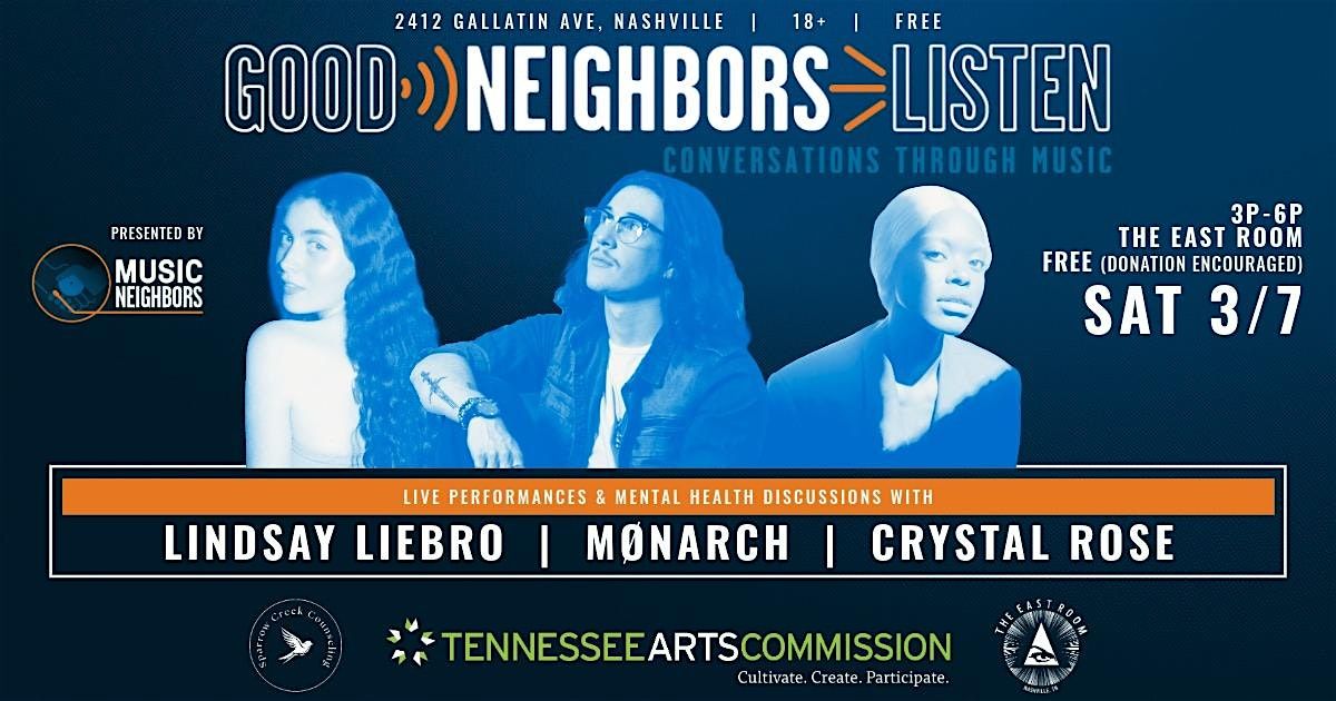 Music Neighbors presents Good Neighbors Listen, a FREE concert series that is all about community, music, and wellness. Join us for a unique experience that combines live music performances with discussions about mental health.