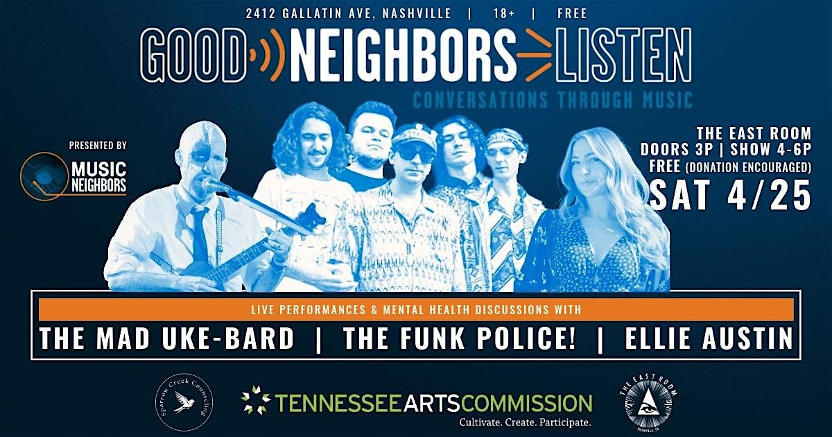 Music Neighbors presents Good Neighbors Listen, a FREE concert series that is all about community, music, and wellness. Join us for a unique experience that combines live music performances with discussions about mental health.