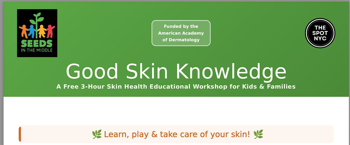 Welcome to the Good Skin Workshop for Kids and Families! Join us at Seeds in the Middle Community Action Spot on March 14, 2026 at 1:00 PM (Eastern Time) for a fun and educational event.