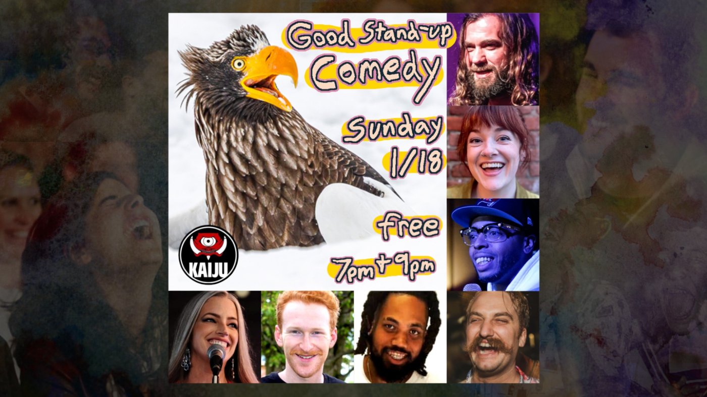 Good Stand Up Comedy for free Sunday 1/18 at 7pm & 9pm at Kaiju with local favorites Mandee Mckelvey, Lucious Williams, Dan Alten, Koasta, Uncle Randy, Cory MIller, and Katelyn Owens.