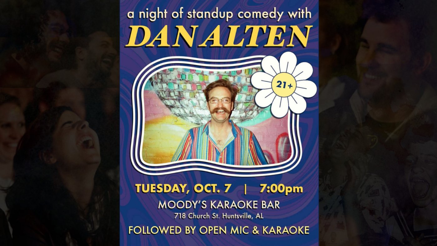 Dan Alten is an intelligent goofball from Kentucky who has been traveling the country for the past decade doing over 200 shows a year bringing his charming nonsense everywhere from theaters to punk basements to art galleries to beloved comedy clubs. Like if the Ramones were one guy with a mustache and good jokes. He has opened for Kyle Kinane Bobcat Sam Tallent Rory Scovel Sarah Sherman from SNL Johnny Pemberton Hari Kondabolu rapper Open Mike Eagle DJ Doug Pound & David Leibe Hart from Tim & Eric various punk bands with silly names and a guy at an open mic who tried to throw his father’s ashes into the crowd. He has recorded 2 albums written a zine and filmed a pilot for an Amazon Prime stand up show that was lost to history. But most importantly he’s very funny and unique. You will enjoy him. And if not you can mud wrestle him after the show.