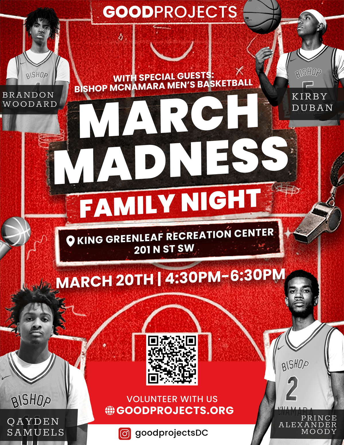 Join GOODProjects for March Madness Family Night, a fun, engaging evening that brings youth, families, and community members together through basketball, creativity, and friendly competition.