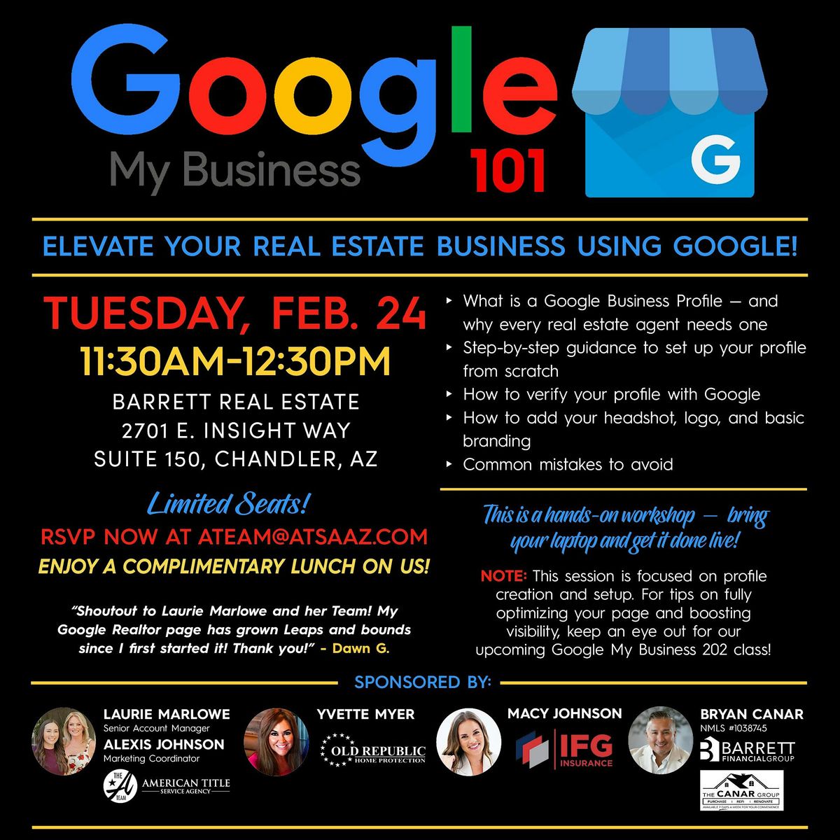 Google My Business 101 is a hands-on workshop created specifically for real estate professionals who want to build a strong, credible local presence on Google. Whether you’re brand new to Google Business Profiles or unsure if yours is set up correctly, this class will walk you through the essentials step by step.