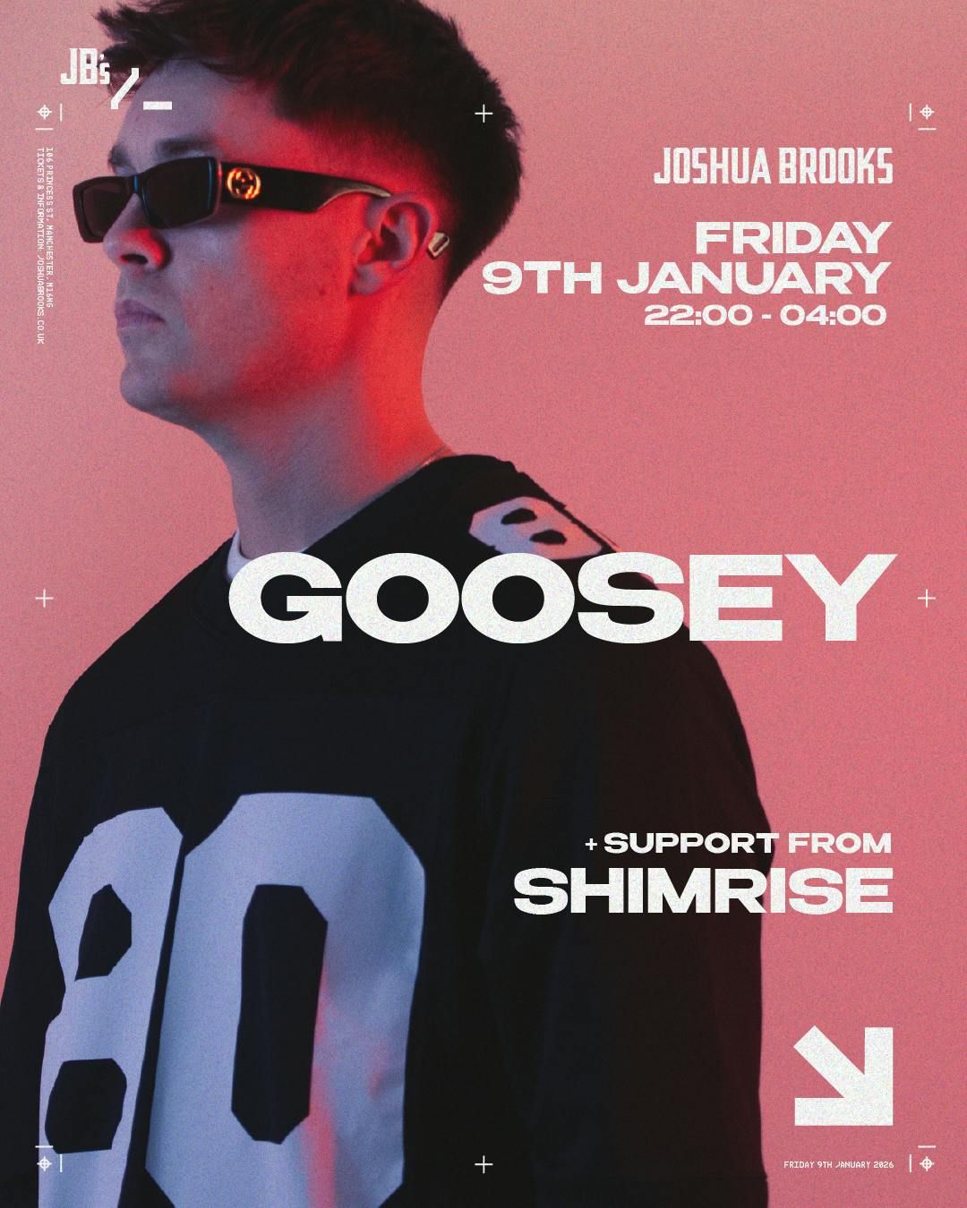 Goosey comes to Joshua Brooks on Friday 9th January.Now based in Barcelona, Goosey has quickly built a reputation as one of the UK's most exciting emerging house artists, balancing classic house foundations with a modern, club-focused edge. His releases on Hot Creations, Paradise and Kaluki have earned consistent support from Jamie Jones, The Martinez Brothers, Michael Bibi and Marco Carola, cementing his place firmly within the current scene.