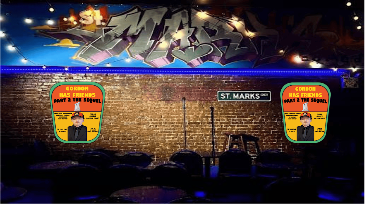 Gordon Has friends part 2 will feature 6 of Gordon's Funniest friends Who happen to be some of the best stand up comedians in NYC! Tickets are 15 dollars along with a 2 drink minimum per person that could be anything off of the St Marks Comedy club menu!!