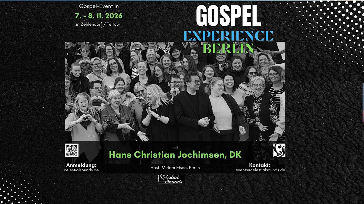 Sei dabei bei der unvergesslichen Gospel Experience Berlin in Zehlendorf/Teltow am 7. und 8. November 2026. Lass dich von mitreißenden Chorsätzen und kraftvollen Liedern begeistern. Unser wunderbarer Gastdirigent, Hans Christian Jochimsen aus Dänemark wird dich und uns mit seiner warmen und humorvollen Art begeistern. Diese Veranstaltung vor Ort verspricht Tage voller Freude, Inspiration und Gemeinschaft. Verpasse nicht die Gelegenheit, dich mit anderen zu verbinden und den Geist der Gospelmusik zu feiern.