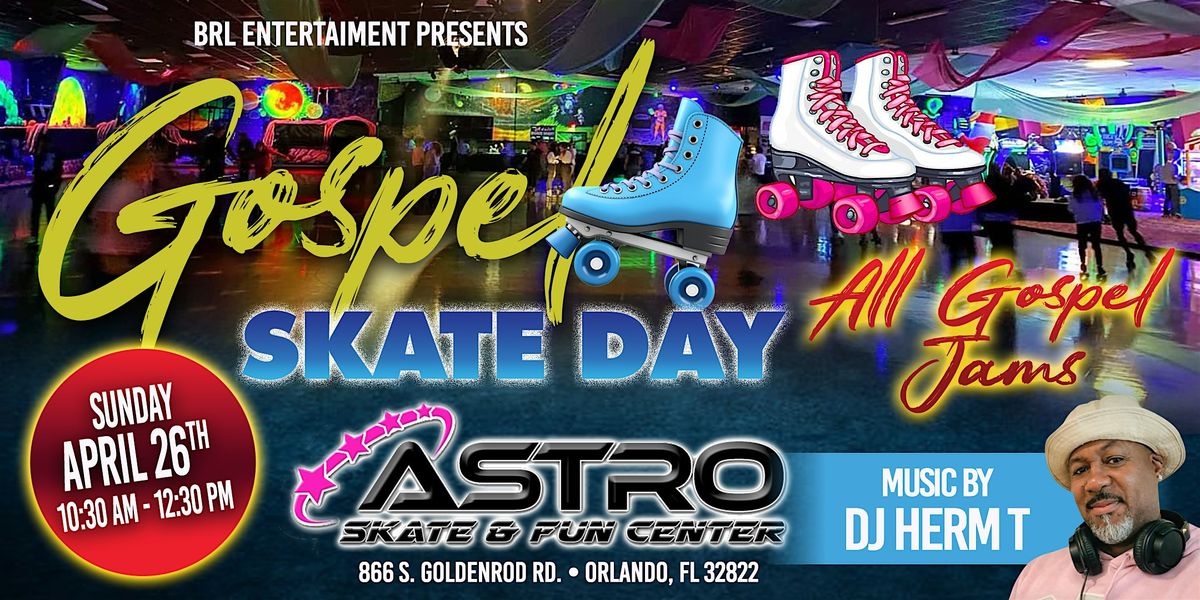 Come out and enjoy a morning of fun playing only gospel music by DJ Herm T as you skate, an fun filled way to start your Sunday Funday