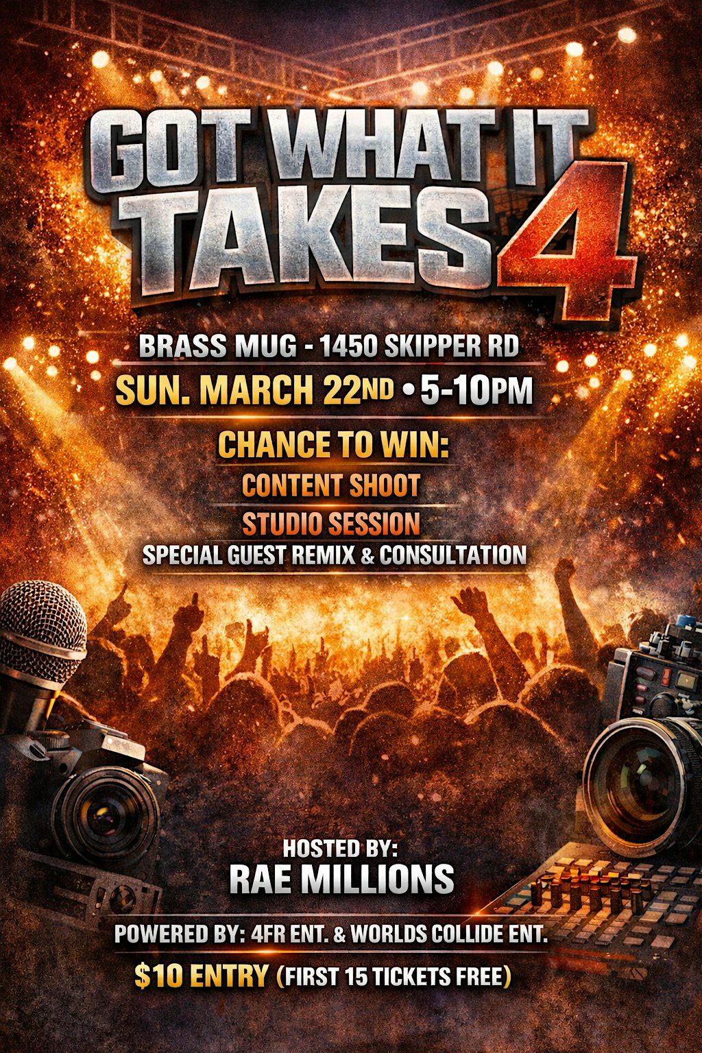 Join us for a night of incredible talent and creativity. This in-person event will feature up-and-coming artists from various backgrounds, showcasing their skills in music, art, and more to compete for grand prizes and excel in their career! Come support these talented individuals and enjoy a night filled with entertainment, music, vendors, food & MORE. Live judges & special guest will be in attendance! Don’t miss out on this opportunity to discover the next big thing in the music world. See you there! #4FR