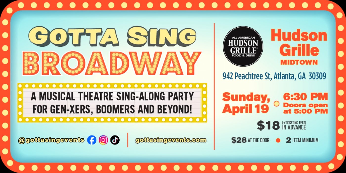 $18 pp plus ticketing fees and a 2-item minimum pp purchase at the restaurant, come early so we can sing together with full bellies! https://gottasingevents.com/#event-hudsongrille