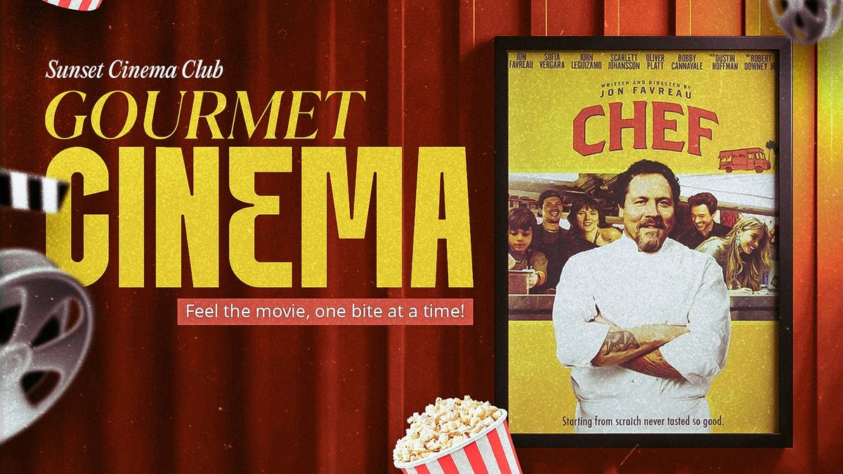 Gourmet Cinema: ChefExperience cinema like never before with Gourmet Cinema—where storytelling meets fine dining. Settle in for a special screening of the feel-good film Chef, a celebration of food, family, and passion, paired with an indulgent 5-course curated meal inspired by the spirit of the movie.As the story unfolds on screen, enjoy thoughtfully crafted courses that elevate key moments of the film, creating a seamless blend of flavours and emotions. From the first bite to the final frame, this immersive evening is designed for food lovers, movie buffs, and anyone who believes the best stories are shared over a great meal.Come hungry - for cinema, for flavour, and for an unforgettable experience.