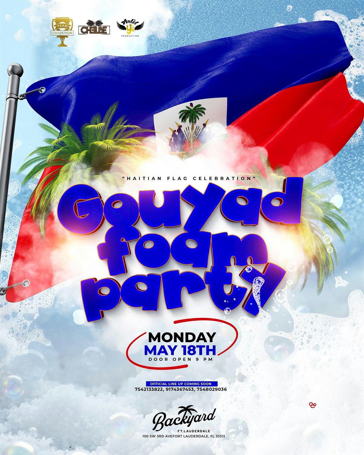 MAY 18TH, WE OUTSIDE FOR HAITIAN FLAG CELEBRATION, GOUYAD FOAM PARTY AT THE BACKYARD FORT LAUDERDALE.