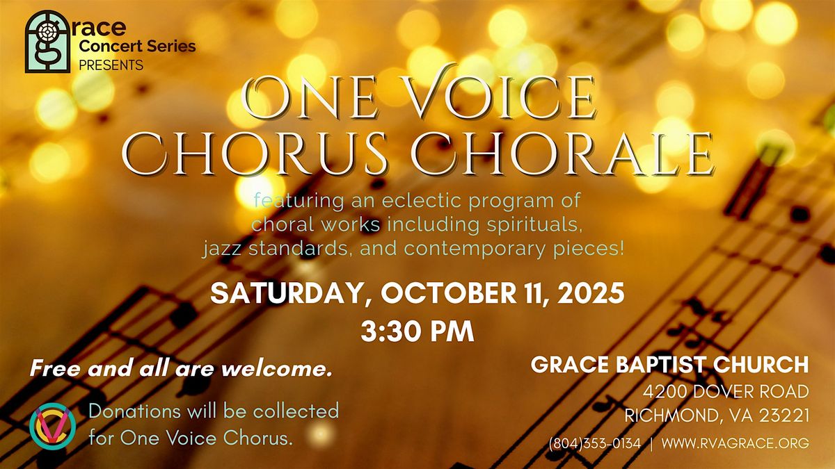Get ready to be blown away by the harmonious voices of One Voice Chorus Chorale at the Grace Concert Series - it's going to be magical!
