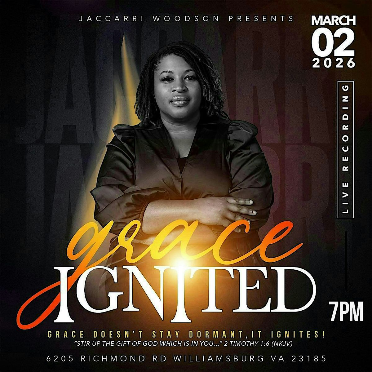 Get ready for an unforgettable experience at the Grace Ignited Live Recording! This in-person event brings you closer to the action with powerful moments, inspiring messages, and amazing energy. Join us to witness the magic unfold live, connect with others, and be part of something truly special. Mark your calendar, grab your ticket and come worship with us—can't wait to see you there!