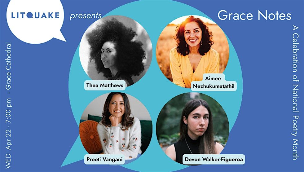 Celebrate National Poetry Month with Litquake, the largest independent literary festival on the West Coast. Join us in this gloriously Gothic space to enjoy poetry in the pews from a distinguished roster of poets. Curated and hosted by D.A. Powell and Preeti Vangani, this special evening of exalted verse features four celebrated poets who will share their newly published work: Thea Matthews, Aimee Nezhukumatathil, Preeti Vangani, and Devon Walker-Figueroa. A book sale and signing will follow the readings. Book sales provided by Green Apple Books.