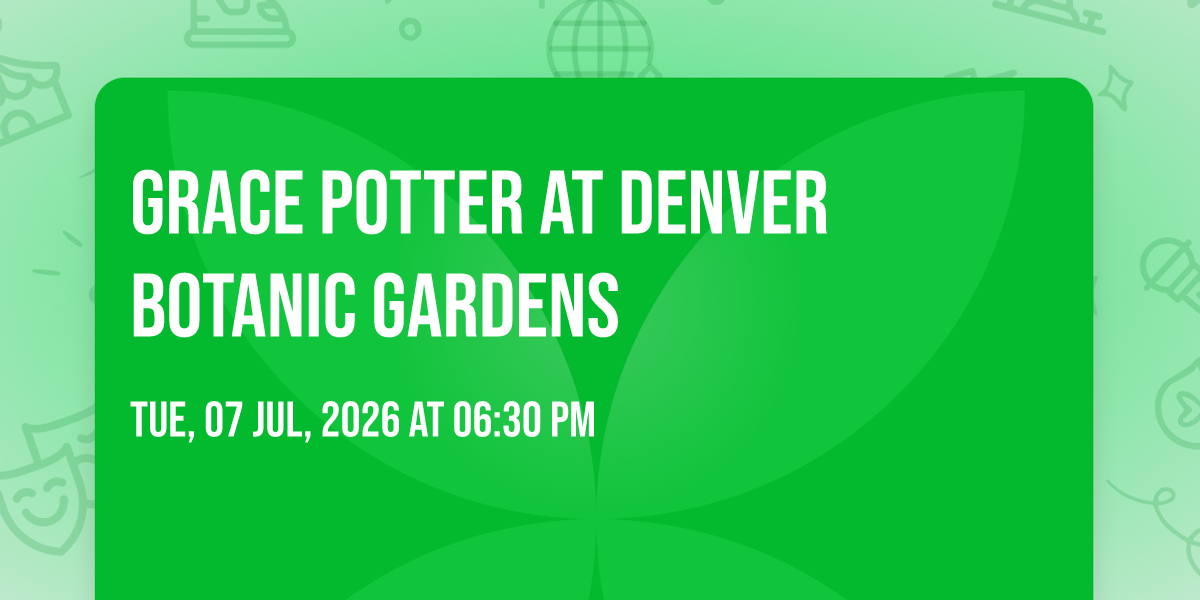 π Journey into wonder at Grace Potter at Denver Botanic Gardens, where extraordinary experiences await around every corner! ποΈ Set against the backdrop of Denver Botanic Gardens in dynamic Denver, CO, this event promises to exceed all expectations. π Join us on July 7th, 2026 at 06:30 PM for a celebration that combines innovation, entertainment, and community spirit in perfect harmony. β¨ There will be an atmosphere where memories are made and stories come alive, ensuring every guest experiences something truly remarkable. π This is more than just an event; it's a journey into the extraordinary!