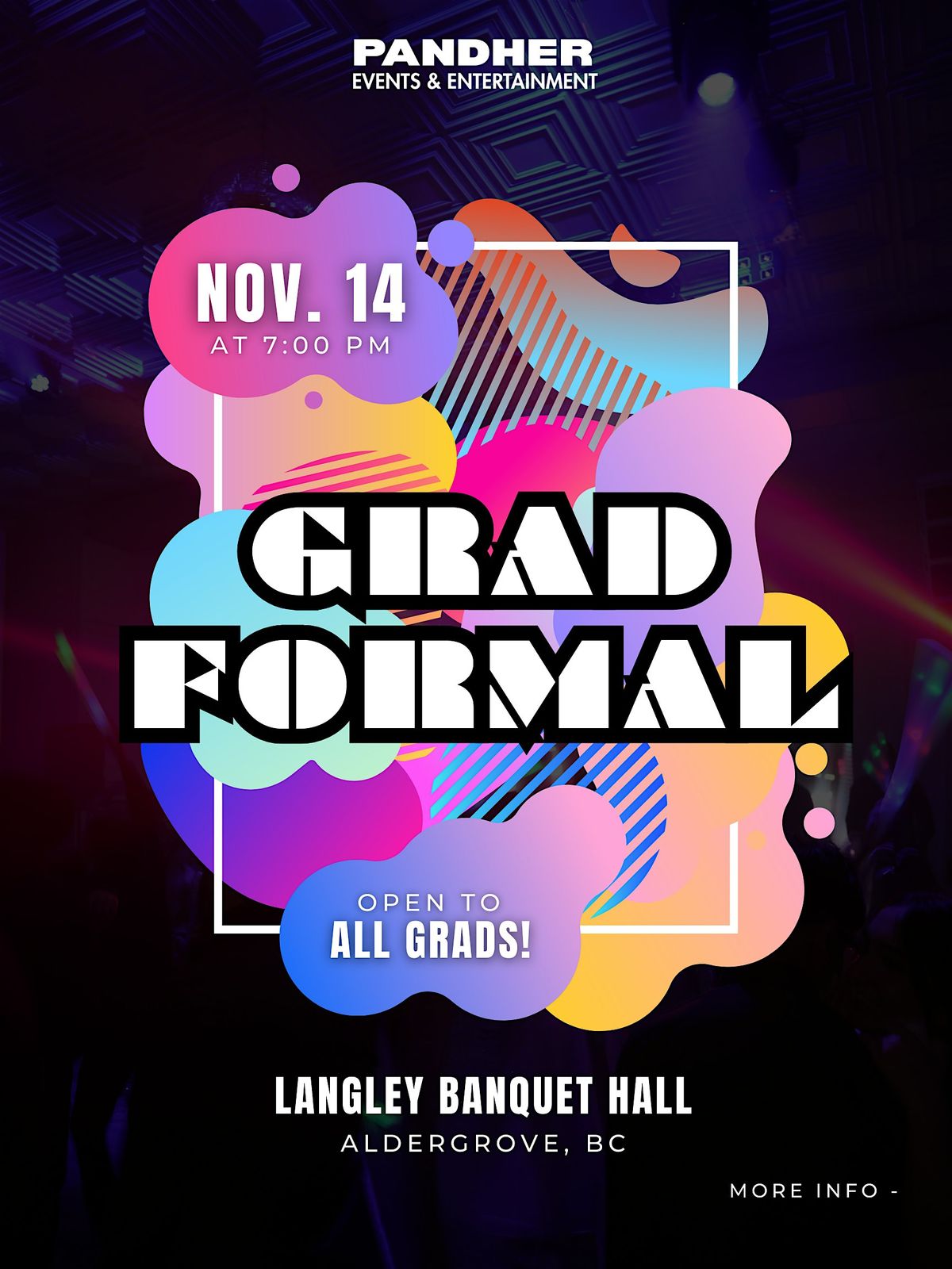 Get ready to dance the night away at the Grad Formal - 2026. Event will be held at the Langley Banquet Hall on November 14, 2025 at 7PM!About this Event