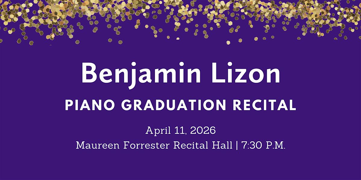 Join us for a celebration of our graduating student Benjamin Lizon, a talented pianist who will showcase their final performance for their Laurier degree or diploma.