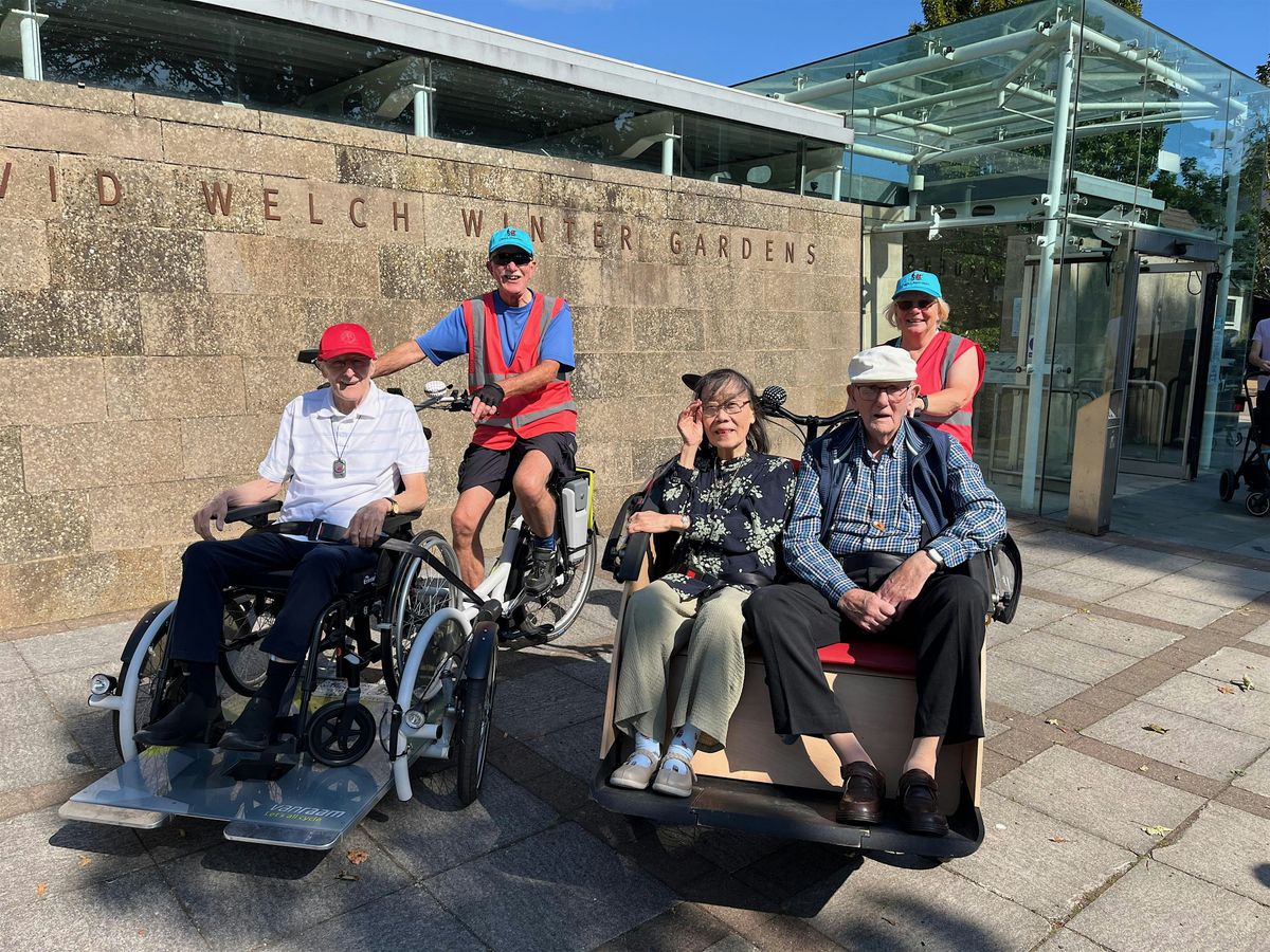 Come join us at Duthie Park for Trishaw rides along the Esplanade as part of Grampian Wellbeing Festival. Each ride last 30-40 minutes and we can accommodate 1-2 passengers on each Trishaw or one passenger plus wheelchair on our wheelchair bikes.