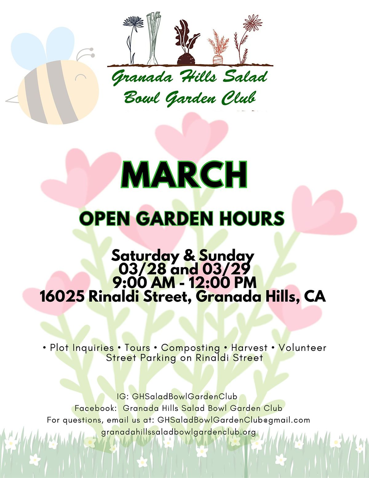 Granada Hills Salad Bowl Garden Club - March Open Garden Hours - 03/29/2026