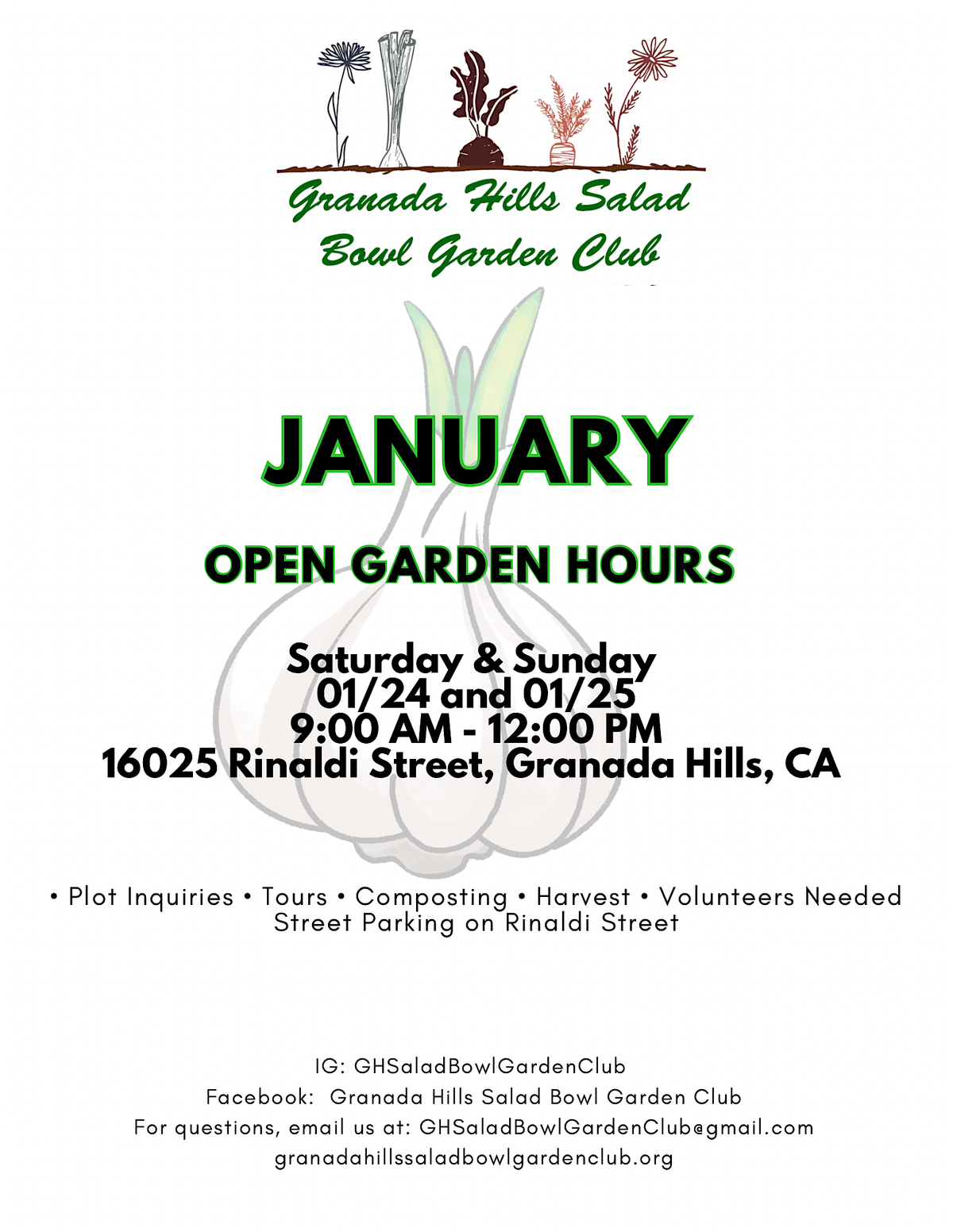 Granada Hills Salad Bowl Garden Club - Open Garden Hours - 01/25/2026