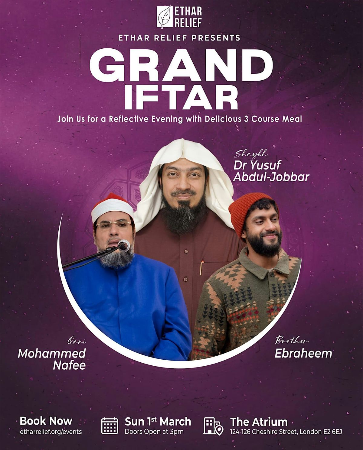 Join us for a special Grand Iftar in London, hosted by Ethar Relief. This event brings together the community in the blessed month of Ramadan for an evening of spiritual enrichment, inspiration, and charity.