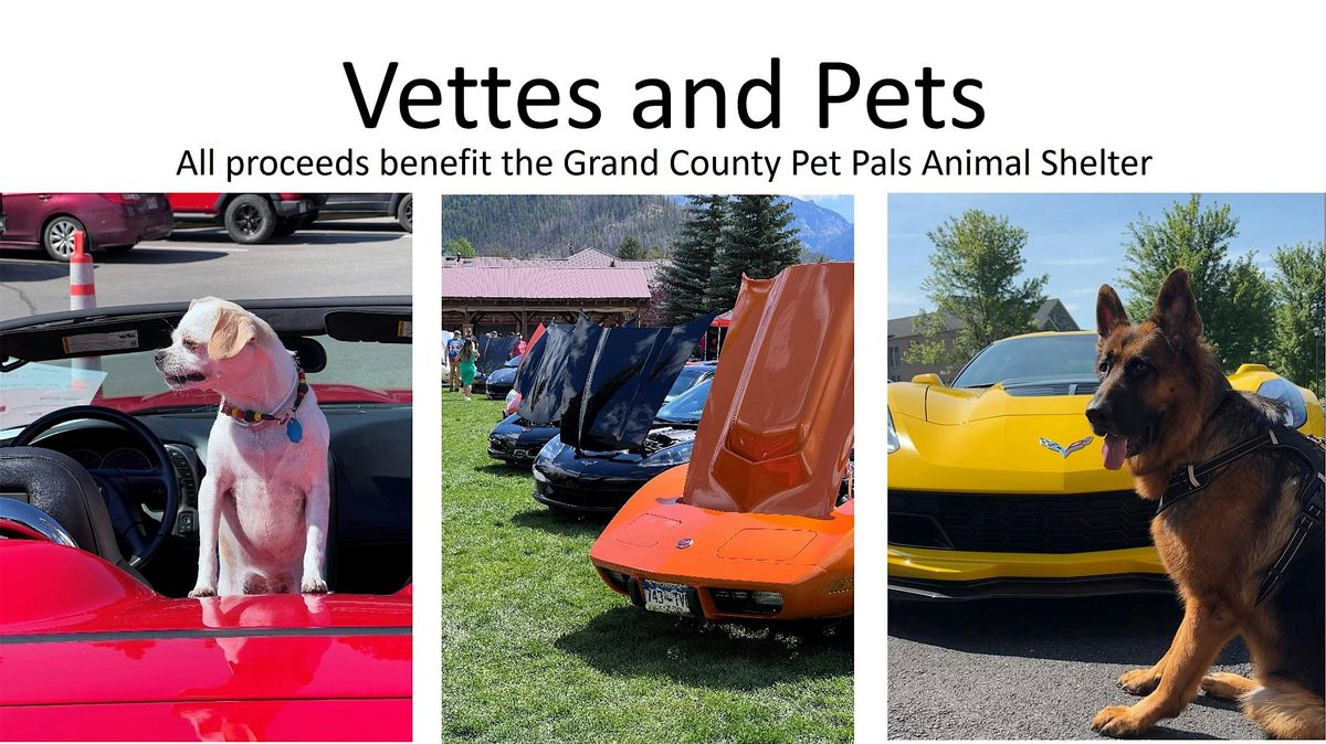 Welcome to the Grand Lake Corvette Show - Vettes and Pets! Join us at Town Square Park for a day filled with beautiful Corvettes and adorable pets. Whether you're a Corvette enthusiast or an animal lover, this event is perfect for you. Come check out some of the coolest Vettes in town and meet some furry friends along the way. All proceeds (Net of Eventbrite fees) benefit the Grand County Pet Pals Animal Shelter. Register Early. Due to the amount of space allocated for this event, registration is limited to the first 120 participants. Also, the show this year will only be open to Corvettes. It's a fun-filled day for the whole family, so don't miss out! We can't wait to see you there! Note: Only one ticket is required per car regardless of the number of attendees.