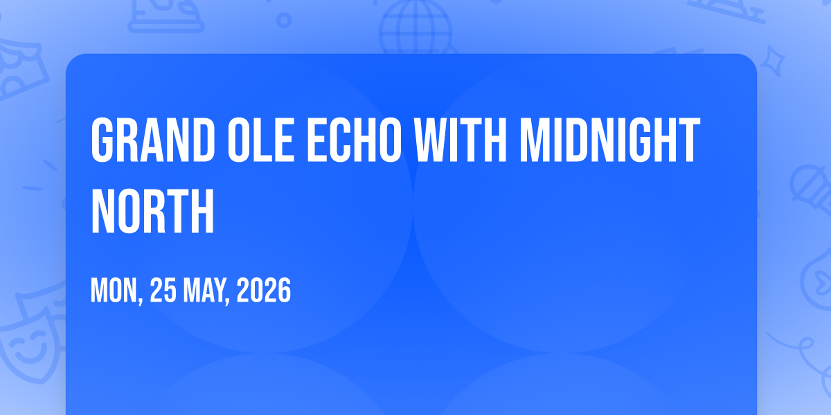 π Location: 34.0777, -118.26π Welcome to Grand Ole Echo with Midnight North, where the impossible becomes possible and dreams take flight! ποΈ Join us at The Echo - Los Angeles in the heart of Los Angeles, CA for an event that will redefine your expectations. π On May 25th, 2026 at 12:00 AM, witness the transformation of space and time into something truly magical. β¨ It's a curated experience combining the best of innovation, entertainment, and community spirit, creating moments that will be remembered for years to come. Whether you're a first-time visitor or a seasoned enthusiast, prepare to be amazed. π Book now to ensure your place in this unforgettable experience!