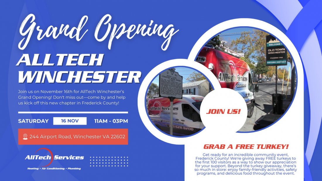 We're expanding to Winchester at AllTech Services and we believe in giving back to the community that trusts us with their home comfort. Join us for an exciting grand opening where the first 100 visitors will receive a free turkey!