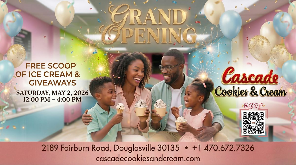 Youβre invited to celebrate the Grand Opening of Cascade Cookies & Cream! Join us for a fun-filled, family-friendly event full of sweet treats, great vibes, and exciting surprises.