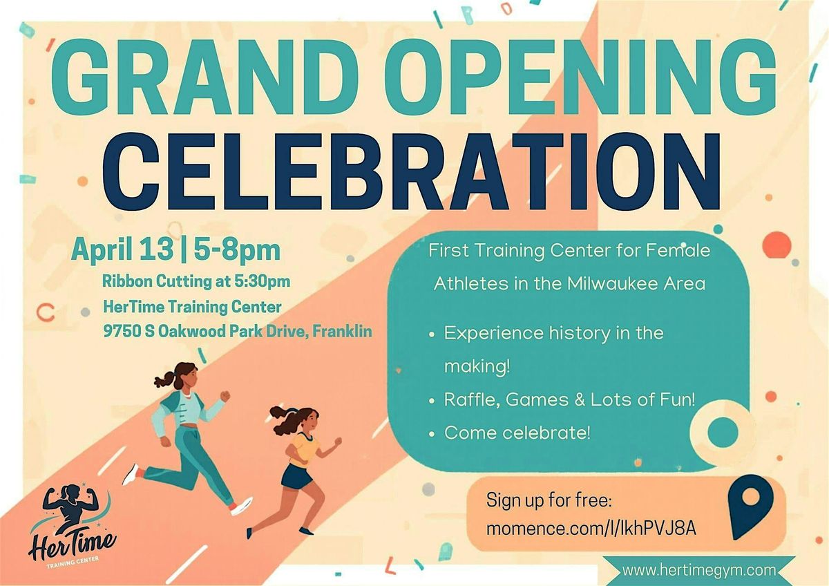 Join us for the Grand Opening of HerTime Training Center—the first training center in the Milwaukee are specifically designed for female athletes. Ribbon Cutting is at 5:30pm. There will be games, raffles and a whole bunch of fun! Come check out the facility and see if it is good fit for someone you love.