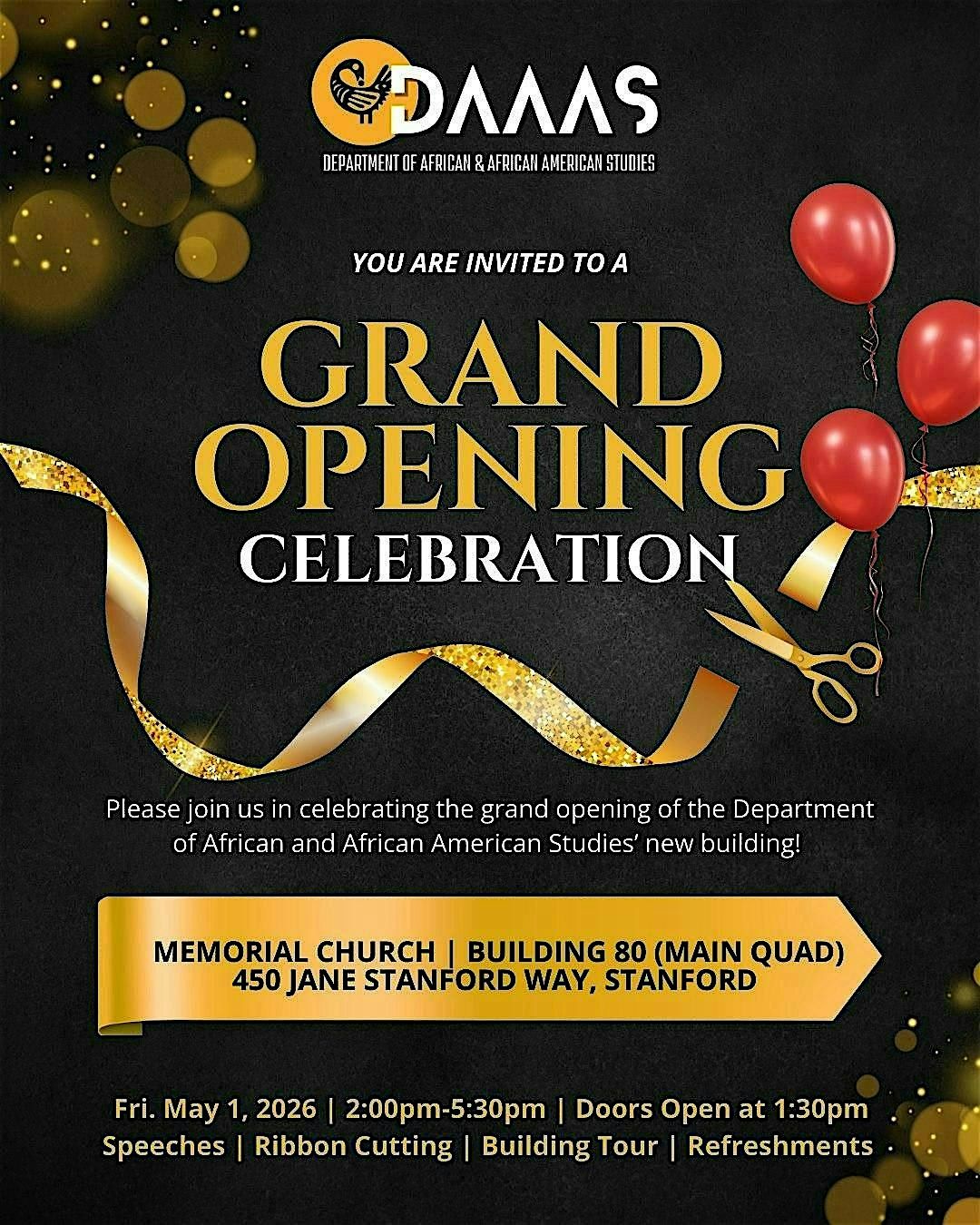 We're thrilled to invite you to the Grand Opening of the Department of African and African American Studies' new building!
