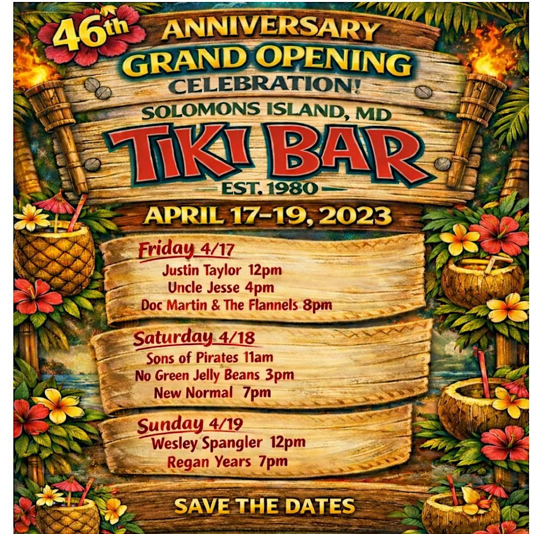 Come join us at Tiki Bar Solomons Island on April 18, 2026 at 11:00 AM to celebrate this special occasion. Get ready for a day filled with fun, music, and great vibes!