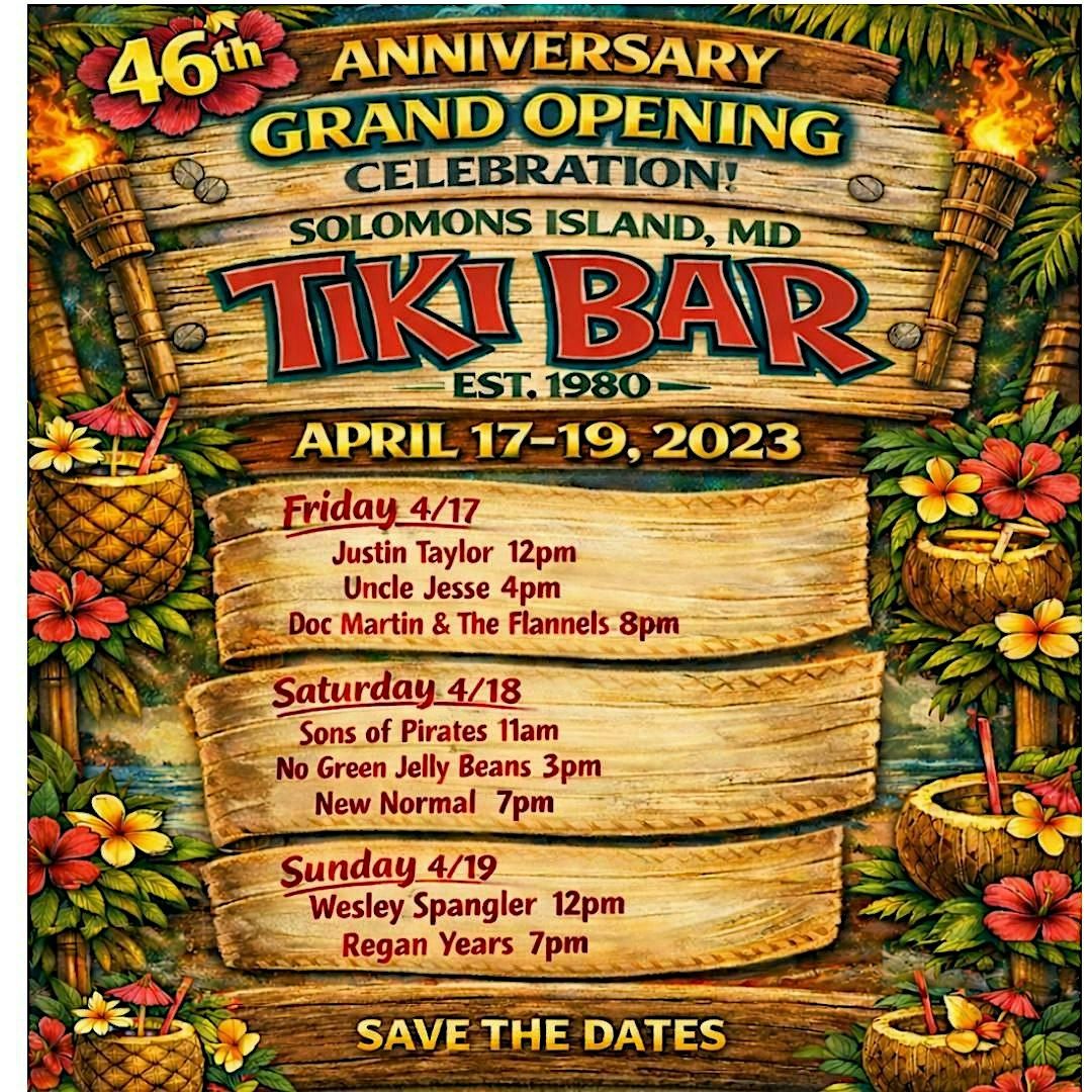 Come join us at Tiki Bar Solomons Island on April 19, 2026 at 11:00 AM to celebrate this special occasion. Get ready for a day filled with fun, music, and great vibes!