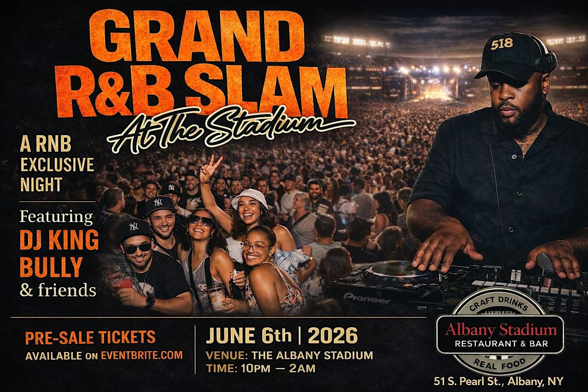 Join us on June 6, 2026 at 10:00 PM (Eastern Time) for an R&B exclusive night featuring DJ King Bully & Friends at Albany Stadium Restaurant & Bar!