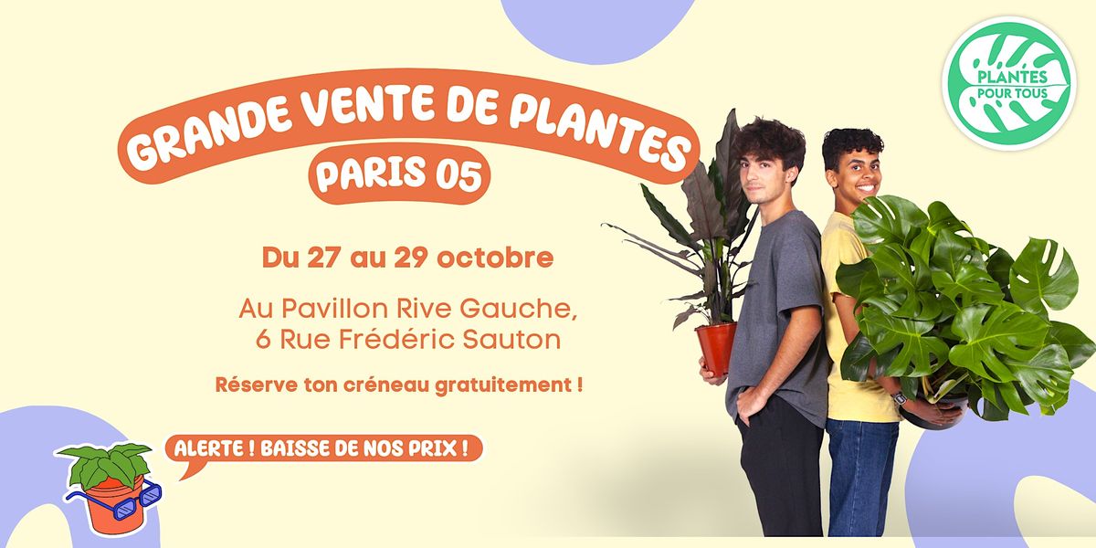 ENVIE DE REFAIRE LE PLEIN DE VERT À PRIX TOUT DOUX ? Plantes Pour Tous revient dans le 5ème arrondissement de Paris avec sa Grande Vente de Plantes ✨