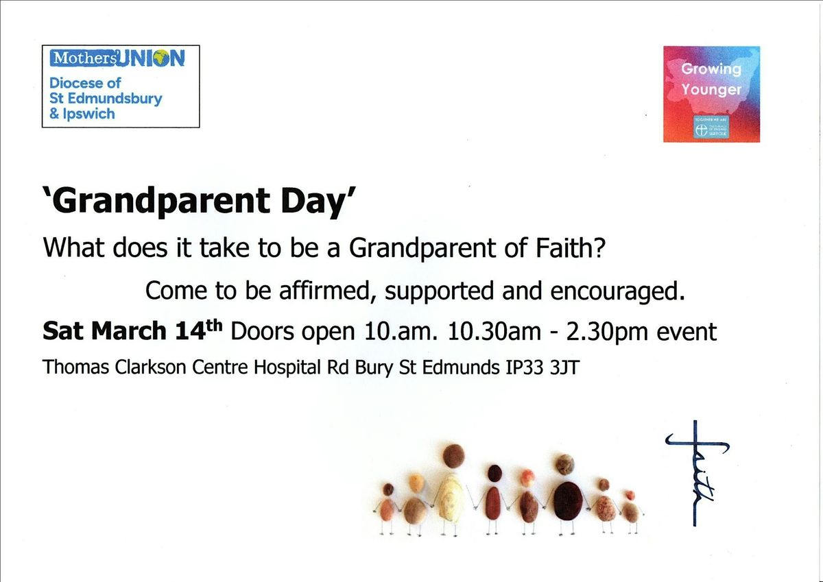 This day event organised by the Mothers’ Union, in partnership with the Diocesan Growing Younger Team is designed to bring together grandparents of faith (from little faith to strong faith) and of any denomination. So that through a programme to include worship, key speakers and small group workshops, participants will feel supported and encouraged and see ways to make a spiritual difference in their family situations.