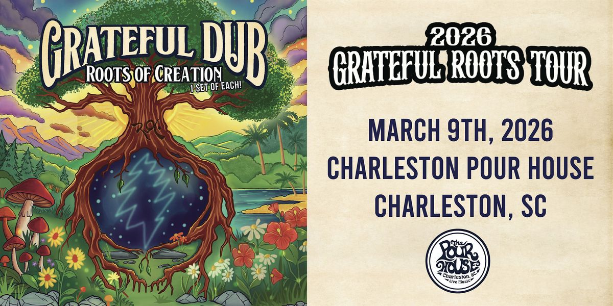 Pour House Charleston- Get ready for an epic night with GRATEFUL DUB & Roots of Creation, where the classic vibes of the Grateful Dead meet the smooth rhythms of reggae! This in-person event is all about laid-back grooves, good vibes, and timeless tunes reimagined with a reggae twist. Whether you're a Deadhead or just love chill sounds, this tribute will have you dancing and feeling the love all night long. Don’t miss out on the fun — come vibe with us!