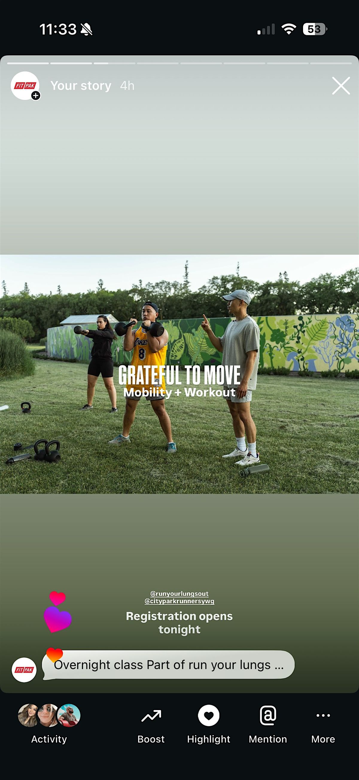 Grateful to Move, a 45-minute community workout as part of the Run Your Lungs Out event supporting cancer research.