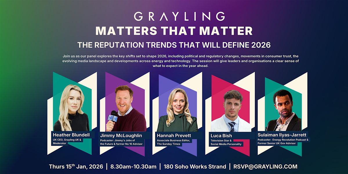 Matters that Matter will explore the evolving reputational environment, the major risks on the horizon, and what leaders need to do now to build and protect trusted reputations in 2026. We will also be launching our new Global Trends Report on Reputation, which looks at how expectations, behaviours and narratives are shifting globally.