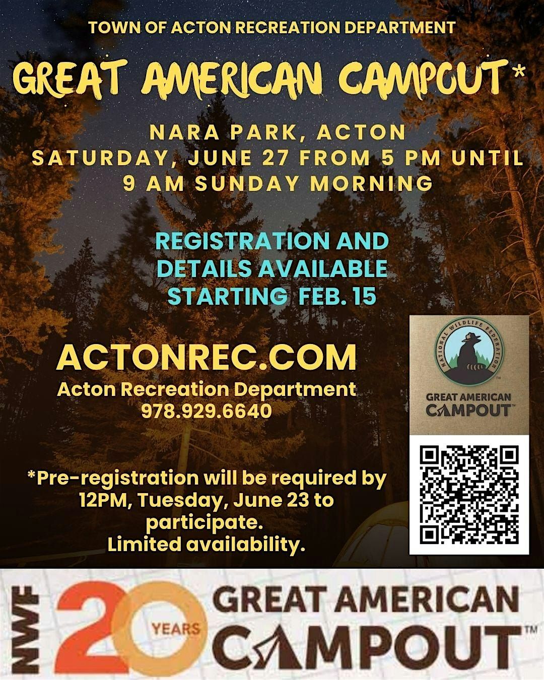 Join us for the Great American Campout in Acton—campfire vibes, fun games and activities and good times under the stars!About this Event