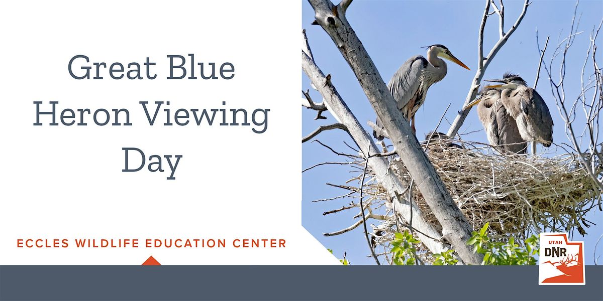 Join us for Great Blue Heron Viewing Day at the Eccles Wildlife Education Center. Herons began arriving in February and will continue to raise their young until they fledge in June. April is one of the best months to see the herons with their chicks!