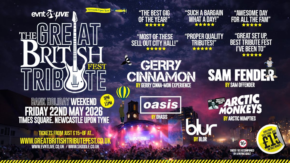 🥁🎸🎤 THE GREAT BRITISH TRIBUTE FEST 2026 🎤🎸🥁Newcastle’s Ultimate Indie & Brit Rock Singalong📅 Friday 22nd May 2026 – Bank Holiday Weekend📍 Times Square, Newcastle Upon Tyne⏰ 5PM – 11PM